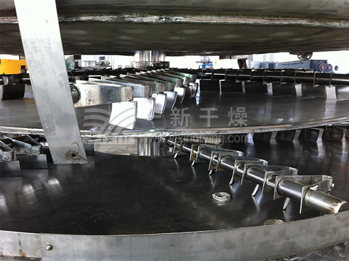 2.每層干燥盤皆可通入熱介質(zhì)或冷介質(zhì)、對(duì)物料進(jìn)行加熱或冷卻,物料受熱均勻,溫度控制準(zhǔn)確、容易。