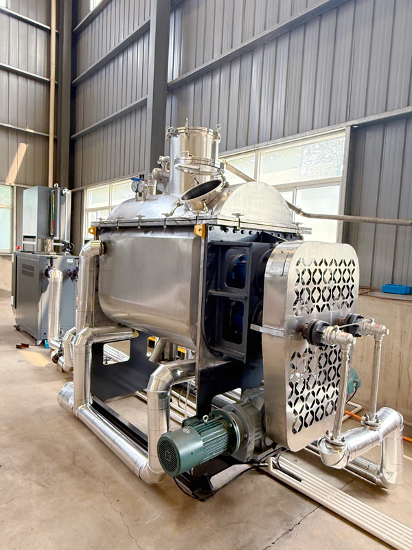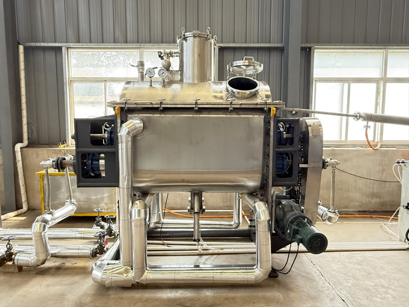 真空螺旋干燥機概述:真空螺旋干燥機是一種先進的干燥設(shè)備,在眾多工業(yè)領(lǐng)域發(fā)揮著關(guān)鍵作用,尤其適用于對干燥條件要求苛刻的物料處理。真空螺旋干燥機通過在真空環(huán)境下,利用螺旋輸送器的轉(zhuǎn)動來實現(xiàn)物料的干燥。其主要工作機制是熱傳導(dǎo)和物料的攪拌輸送。在真空狀態(tài)下,物料中的水分沸點降低,更容易被蒸發(fā)。螺旋輸送器的葉片在旋轉(zhuǎn)過程中,一方面將物料不斷向前推進,另一方面對物料進行攪拌,使物料均勻受熱。同時,干燥機的夾套中通入加熱介質(zhì),如蒸汽、導(dǎo)熱油等,熱量通過夾套壁傳導(dǎo)至物料,加速物料中水分的汽化。汽化后的水蒸氣被真..