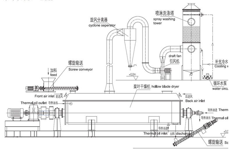 2、槳葉干燥機系統造價低: 單位有效容積內擁有巨大的傳熱面,就縮短了處理時間,設備尺寸變小。就極大地減少了建筑面積及建筑空間。